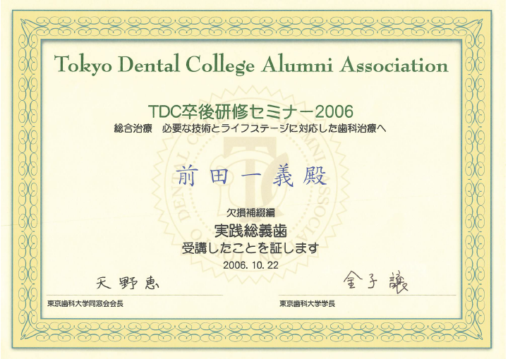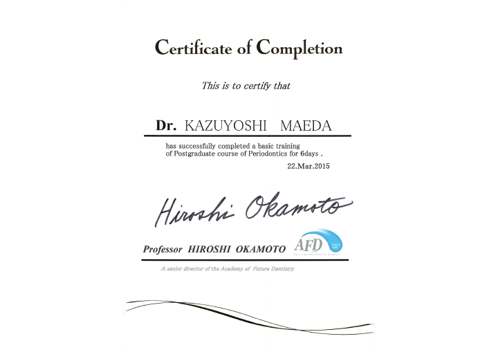 2003年 | 日本歯科大学を卒業。 『前田歯科医院(当院)』に4年間勤務。 |